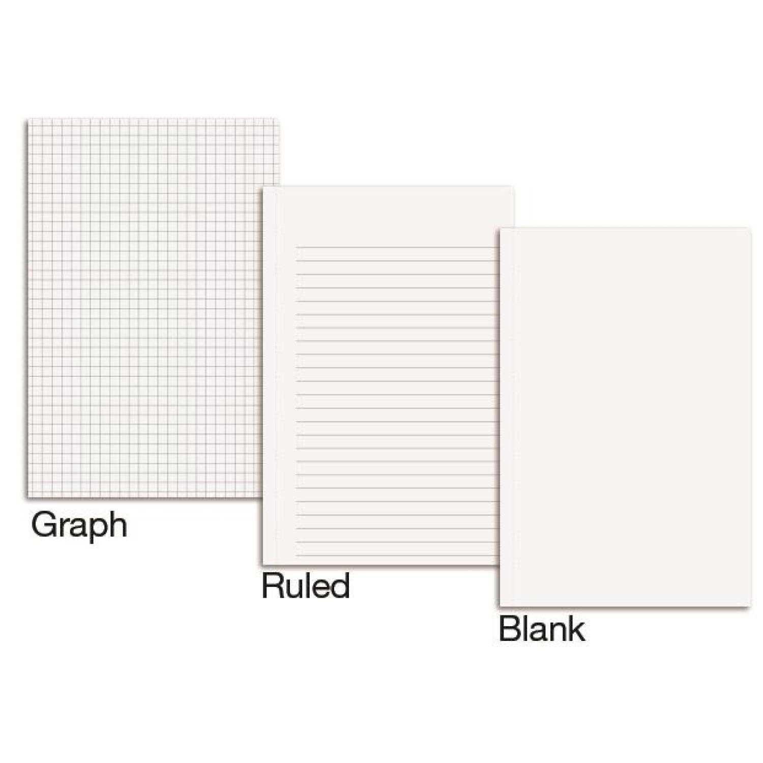 Our Perfect Journal features a flexible paper cover and 100 60 Lb. white offset sheets with light gray rules or graph printed on both sides. Comes Perfect bound on the left side. 7″ W x 10″ H