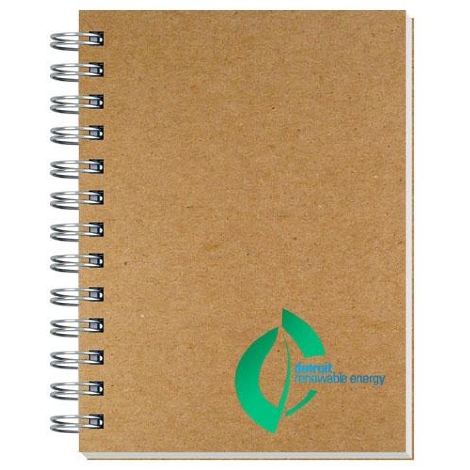 Our Recycled Journal features a heavyweight Natural Brown or Gray cover with 100% post-consumer recycled content and heavyweight Black, Blue, or Charcoal Gray cover with 30% post-consumer recycled content mounted to 100% post-consumer recycled black chipboard. Includes ruled, recycled 60 Lb. white offset sheets with a recycled symbol printed on both sides in the lower right corner. Comes Wire-O bound on the left side. 5″ W x 7″ H